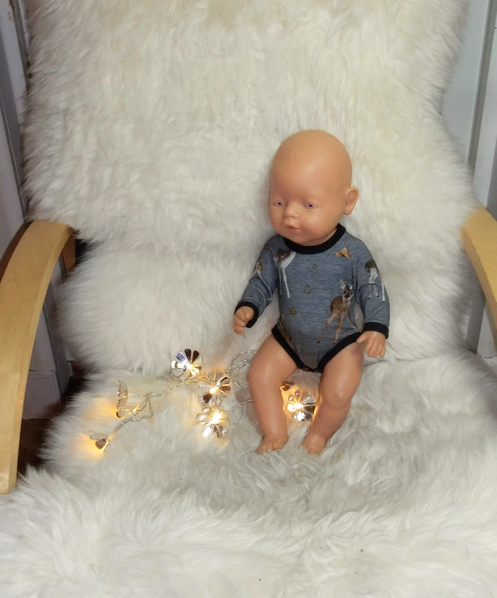 Upptäck vår fantastiska dockbody i jerseybomull med ett stilrent rådjursmönster. Mudden är också gjord av mjuk bomull som kommer att hålla din docka varm och bekväm hela dagen. Knappar i grenen ger den en extra touch av klass och ger enkel åtkomst för att byta blöja. Passar dockor 43 cm och prematurbarn. Denna dockbody är det perfekta valet för dig som vill ha en unik och stilren look för din docka. De när skönt, stilrent och har ett lekfullt utseende. Gör din docka till ett modeuttryck och köp dockbody - Rådjur idag!
